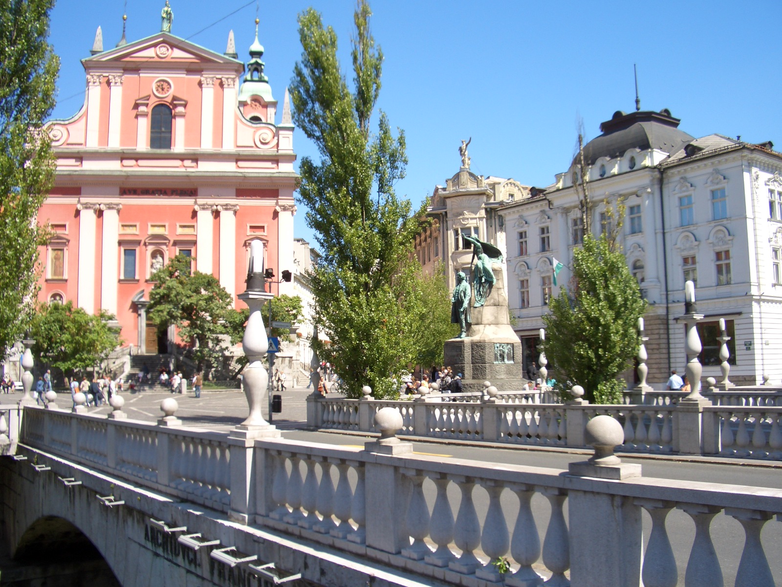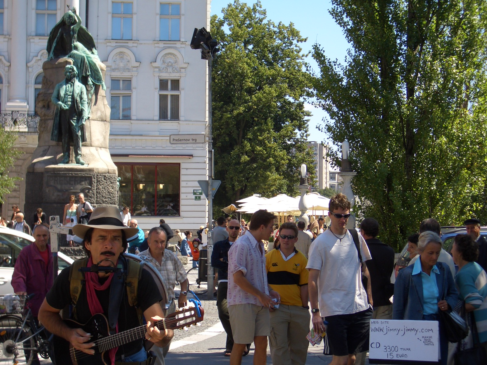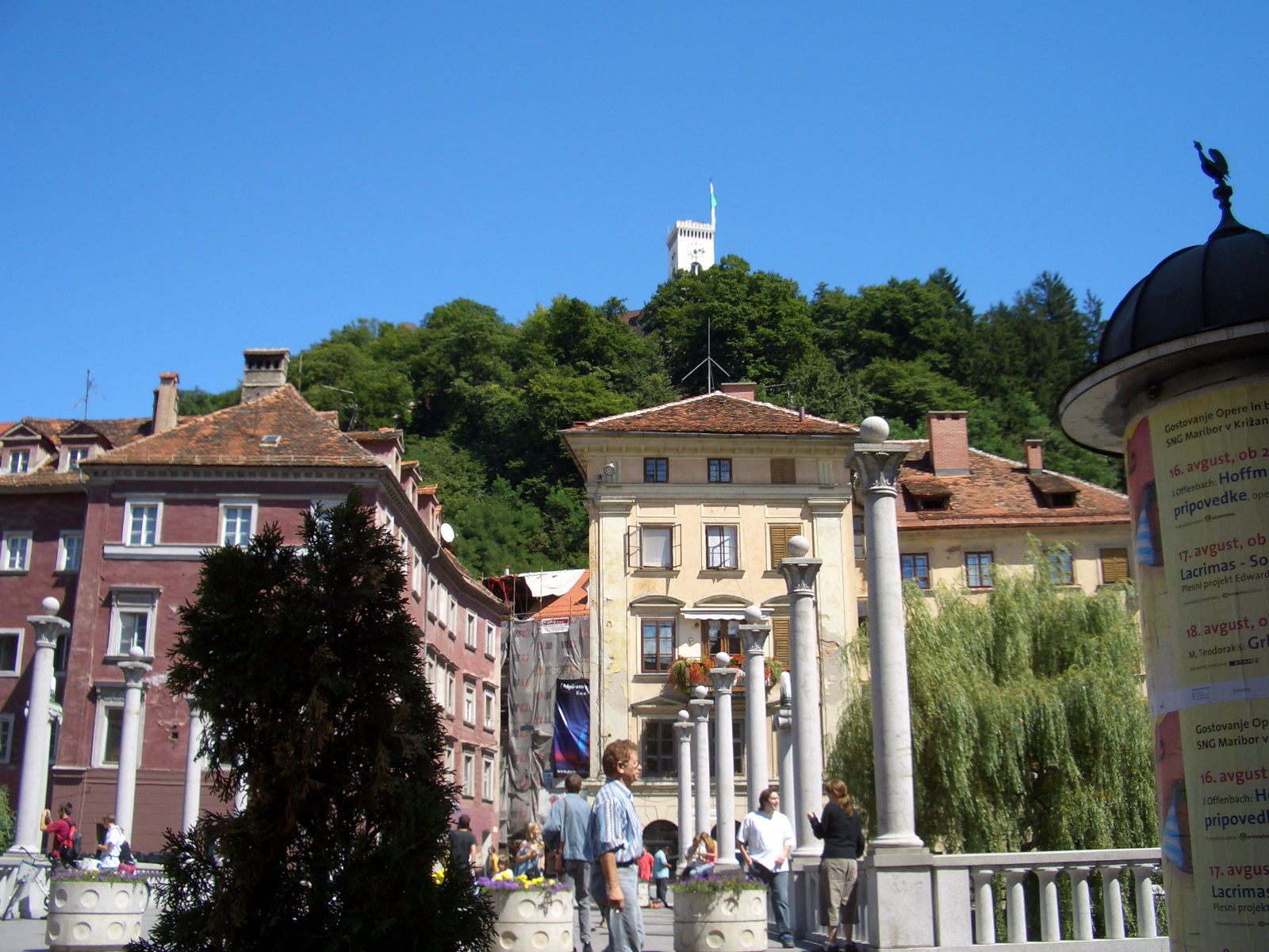 With the assistance of an extremely pleasant tourist info. employee at the Ljubljana train station, I was booked into a hotel in the center of town within minutes of arrival. Literally, the hotel was 50 meters from the center of town, could not have asked for more. Very cool town, the center is a semi-circle with a river running through it, cobblestone alleys with bars, restaurants and shops, and a castle on top of a hill overlooking the town. Although I was passed by a woman twice my age during the climb, I did manage to make it up there and snap a few shots. Spent two days in Ljubljana and I think I saw all there is to see. Here are a few photos