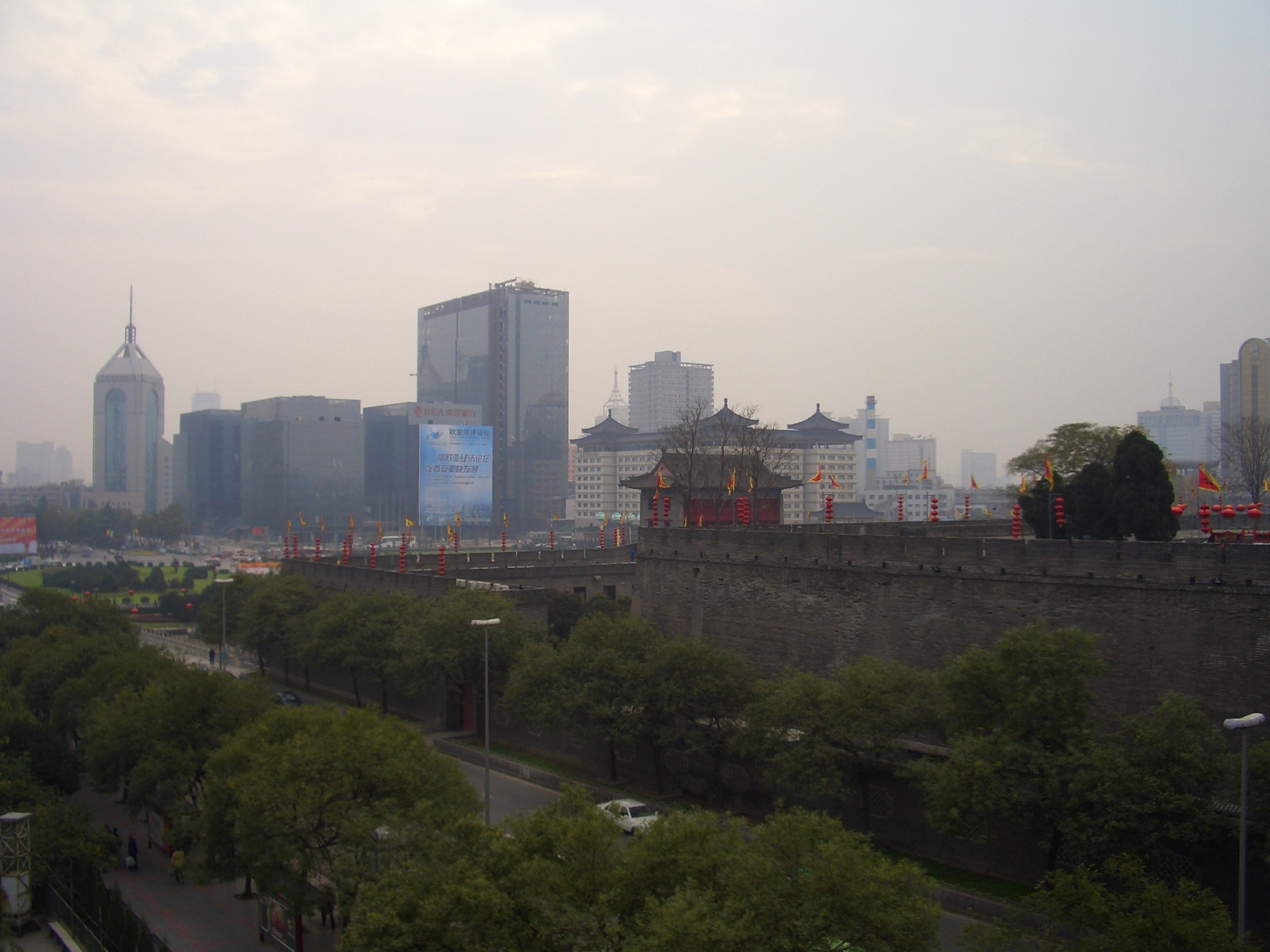 Standing on the wall by the South Gate, modern Xian is everywhere
