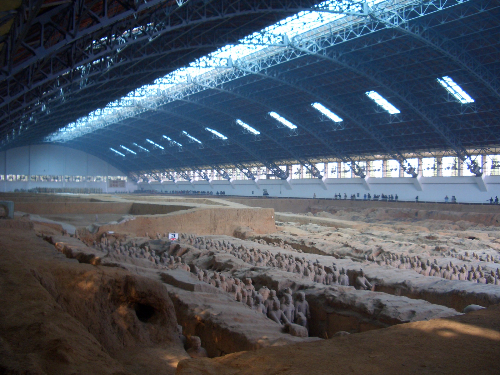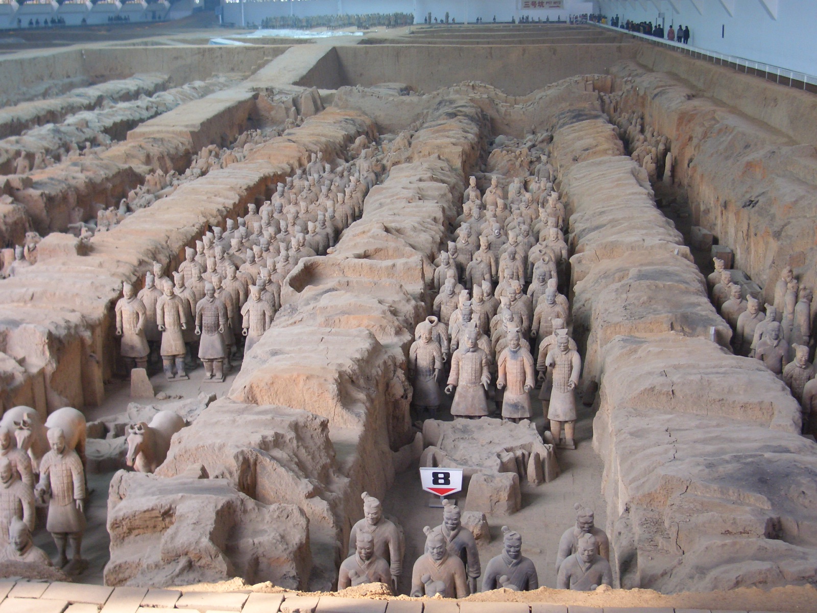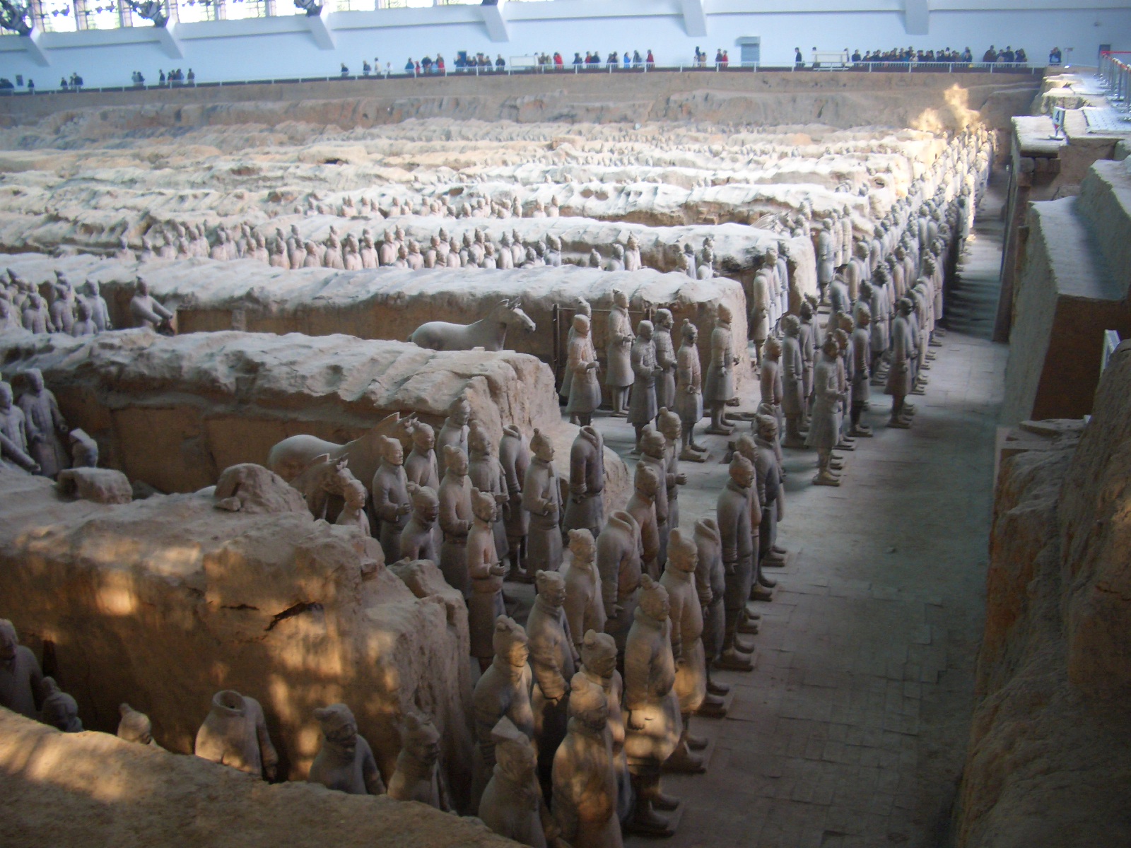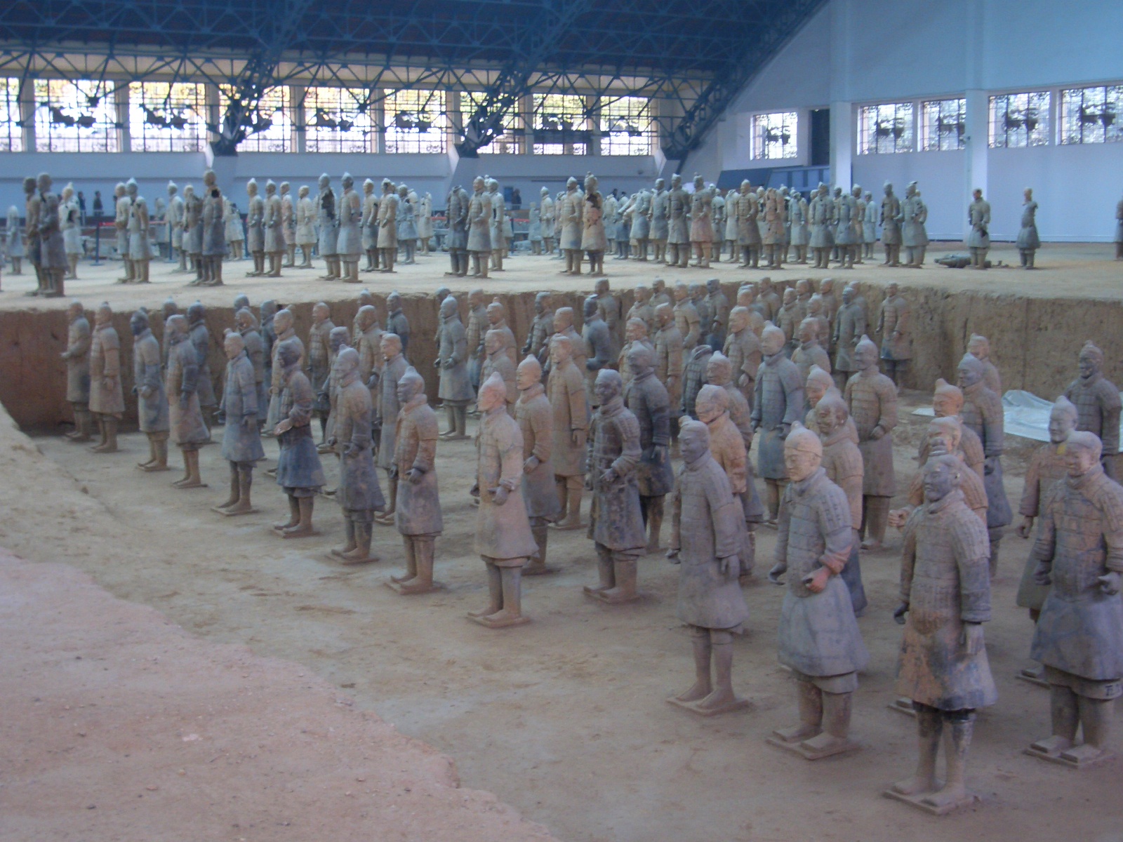 Pretty amazing stuff, and the yet to be unearthed tomb could hold even more interesting discoveries. The designers and laborers that built the tomb were all sacrificed and interred with Qin to safeguard the tomb’s secrets. Probably not the finishing bonus they had in mind. Among the speculation about the tomb: Heaven and earth are represented in the tomb’s central chamber. The ceiling, inlaid with pearls, represents the starry heavens. The floor, made of stone, forms a map of the Chinese kingdom; a hundred rivers of mercury flow across it. And all manner of treasure is protected by deadly booby-traps. It’ll be interesting in the years to come to find just what, besides the body of Qin, those Terracotta Warriors are actually protecting.
