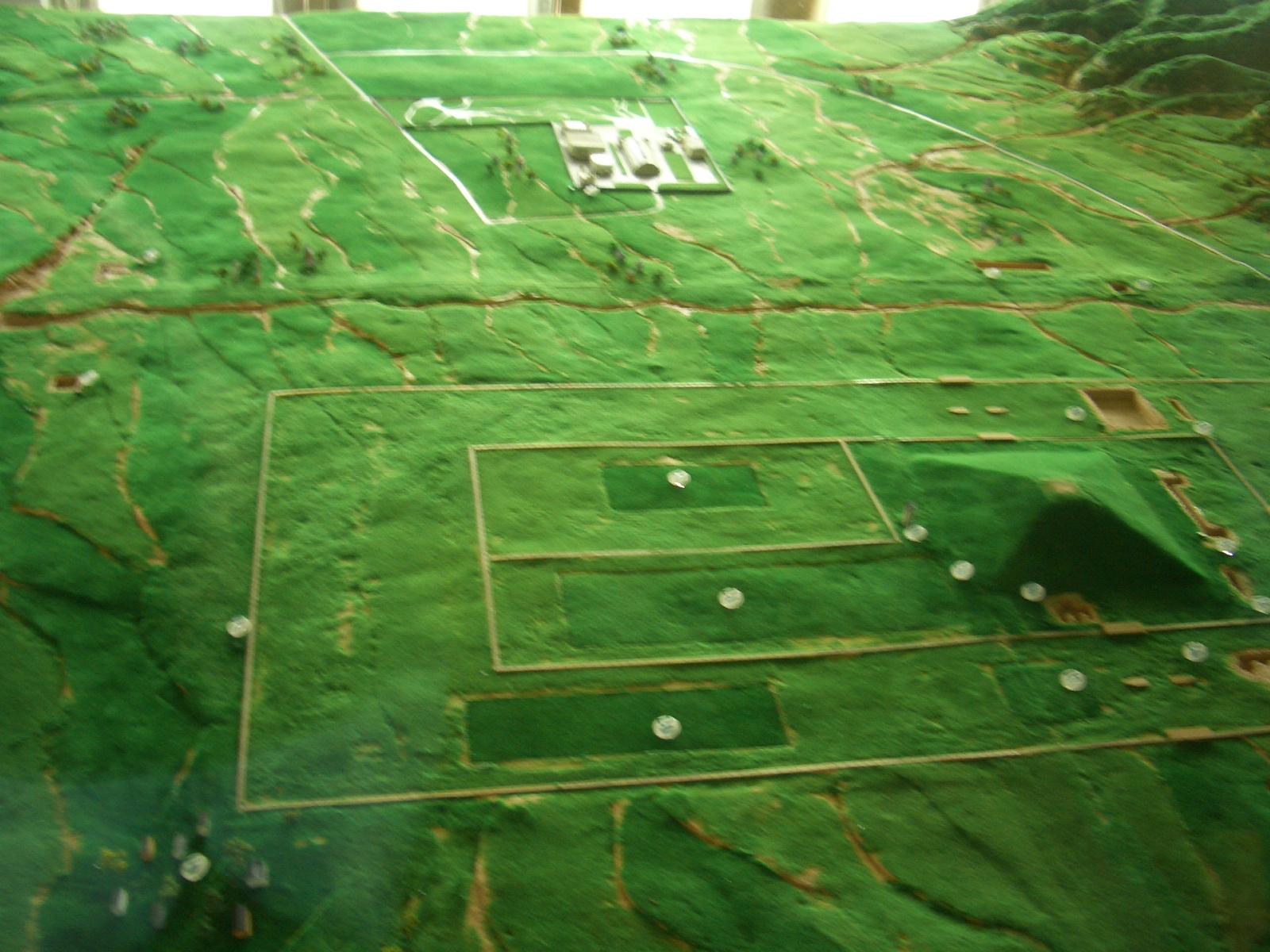 Yet what is truly amazing is that this is just a small part of it. The picture below is of a model of the grounds of the entire burial site. The pyramid-shaped mound in the foreground is where the tomb is thought to be located, and in the background, looking insignificant in comparison, is the massive arch-roofed complex plus a few other museum buildings